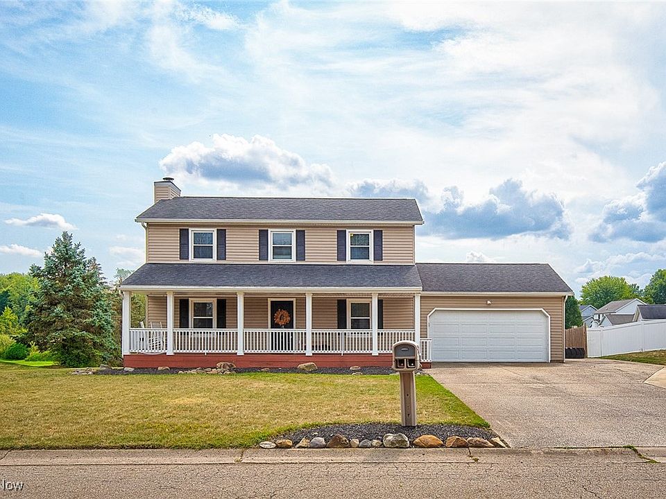 FANTASTIC opportunity in Lake Schools- Classic and timeless colonial 4 BEDROOM, 2.5 bath, 2 car garage home w/rear covered deck & beautiful front porch situated on nearly a 1/2 acre picturesque lot. This home has plenty of space (2032 sq. feet of living area) including finished LL rec. room and office/bedroom. Welcome your guest onto the large front porch into this beautiful home. Great room with gas fireplace and a full wood feature wall. Open to dinette and kitchen with direct access to deck and beautiful backyard. Kitchen is completely updated including new soft close cupboards, custom quartz countertops and stainless steel appliances. Formal dining room and 1/2 bath finish off the main floor. Upstairs has three nicely sized bedrooms: master (16x13) with full bath and walk-in closet . A full bath completes the upstairs. Updates:all new flooring , paint, lighting (2021)