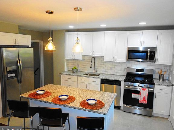 Renovated MOVE IN READY-family friendly neighborhood. 5 bed, 2 bath, 2100+ sf of living space, 4 lvls, open fl plan, kit w/ island, ss appl, wood cabs, granite CT, kitchen opens to 12' x 18'' covered deck - perfect to entertain. Lg fully finished LL. Beautiful HW, ceramic tile & carpet thru-out. New roof, HWH, HVAC, doors & windows. Parking pad. Close to shop/trans & Towson & BC attractions.