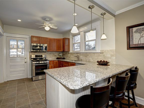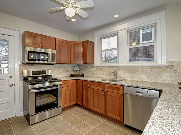 Public: Time to Upgrade?? Beautifully Renovated colonial brick twin. Move right in - everything was done! New open-layout kitchen; soft-close maple cabinets, granite counters, natural stone travertine backsplash, premium stainless appliances, imported porcelain floor (Italy), breakfast bar, and a computer nook with USB charging station for all your gadgets! Re-finished hardwoods adorn the living room & dining room - a nice touch with the wood pellet stove to create an inviting atmosphere for entertaining. New carpet and fresh paint throughout. Upstairs the main bathroom has hand-polished Wht-Carrara marble tile - reminiscent of true craftsmanship. Spacious bedrooms and lots of storage space. Finished basement with Bilco doors opening to the fenced-in back yard. Plenty of parking in front and back in this quiet area. Security alarm system hardware and includes a 1 yr. Home Warrantee for peace of mind!Green: Oil to gas conversion completed with New High efficiency gas forced-air furnace, gas water heater, and central air conditioning. New Energy Star appliances. Replacement vinyl windows. Newly insulated and finished basement with perimeter drain and sump pump.