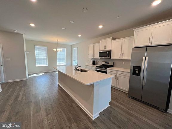 Beautiful 3 level end of group townhome in Odenton with attached garage. Neutral decor throughout. Open concept floor plan with luxury wood flooring on main level and foyer. Gorgeous kitchen with white cedar shake cabinets, white quartz counters, large island with room for seating, stainless steel appliances and dining area. Large living room with slider to deck on main level. Upper level features primary bedroom with walk in closet and ensuite bath featuring double sinks and large walk in shower. 2 additional bedrooms and full hall bathroom complete the upper level. Laundry on bedroom level. Lower level family room with slider to rear yard and 1 car garage. Conveniently located to DC, Baltimore, Ft. Meade, Annapolis, shopping, restaurants, schools and all major commuter routes. Solar panels save significantly on monthly utility bills and no lawn maintenance! Tenant occupied. Home and carpet will be professionally cleaned.