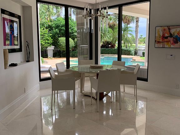 This stunning property features one of the best golf course locations in the Royal Palm Community. The home is saturated with natural light. It is fully furnished, completely renovated chef's kitchen. Primary bedroom is located on the first floor with another large guest bedroom down the hall. Three other on-suite bedrooms are located on the second floor. The outdoor are has a covered Veranda, where you can hang while your friends swim in the pool. The southeast exposure also offers the perfect balance of sun, breeze and shade. The location of this home, provides close proximity to the beaches, great restaurants, shopping and easy access to airports and train transit. Owner responsible for water and other utilities to be determined. Absolutely no smoking.