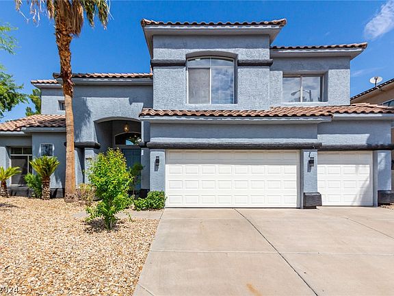 Welcome to your dream summer home with strip views located in Green Valley in the Reserve community. This gem boasts wood-look floors, a neutral palette, and a spacious living/dining room with soaring ceilings. Create lasting memories in the cozy family room, complete with a fireplace. Sleek kitchen is designed featuring white cabinets, granite counters, a mosaic tile backsplash, recessed lighting, stainless steel appliances with wall ovens, and a center island with a breakfast bar. Main bedroom equipped with vaulted ceilings and direct balcony access. Includes dual sinks, a make-up table, a soaking tub, and 2 walk-in closets. Spend tranquil evenings on the balcony sipping your favorite beverage. The backyard is an entertainer's dream, complete with a covered patio, artificial turf, a refreshing pool, and a rejuvenating spa!! This gem is move in ready! Fresh paint inside and out. Brand new floors all down stairs with high quality LVP waterproof & scratch proof flooring.