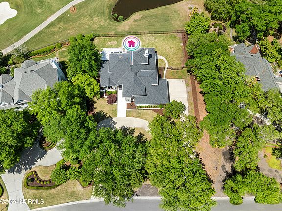 Travel behind the gates & discover this stunning 4-bedroom, 3.5-bathroom home in the prestigious Landfall community, just minutes from Wrightsville Beach. Overlooking the 16th hole of the Pete Dye golf course and pond views. Enter thru the amazing statement and newly installed full glass front door into this calming oasis. Interior highlights include vaulted ceilings with trim details, new hardwood flooring throughout, fresh neutral paint, and updated lighting and plumbing fixtures. The open layout combines high ceilings and abundant natural light, multiple access points to the outdoor living spaces. Formal living & dining areas upon entry to the foyer and also an additional living space boasting a gas fireplace and impact-resistant folding sliders leading off to the back porch. The gourmet kitchen offers granite countertops, a Wolf gas stove, and a breakfast nook with panoramic views of the course & access to the covered back patio. A game room on the main floor with access to the back porch, a renovated wet bar with high-end finishes, all makes for perfect entertainment space. The upstairs includes 2 guest bedrooms and the primary suite. The luxurious primary retreat features a glass fireplace, custom closet, steam shower, new vanity, and a private balcony with impact-resistant doors. Additional comforts include two HVAC units (2020 & 2003), a 50-gallon Rheem water heater (2019), and a modern wireless irrigation system (2022). A home warranty is included for added peace of mind. Enjoy easy access through the Eastwood/Drysdale gates. This property combines luxury with a prime location, making it a must-see for discerning buyers.