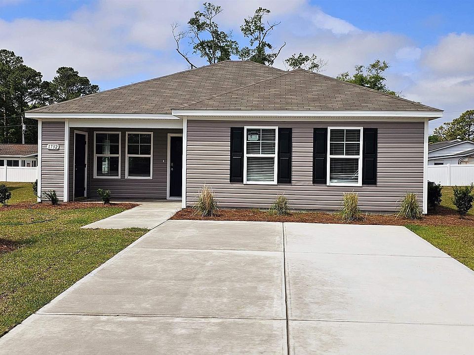 The Curtis floor plan is a livable one story layout with an inviting front porch, soon to be a best seller. You'll fall in love with this floor plan in our newest boutique community just a short distance to the Intercoastal Waterway. This home features an open concept living room and kitchen that are great for entertaining. The kitchen featuring stainless appliances, including a pantry and breakfast bar. Beautiful and durable vinyl flooring in the living space, baths and laundry room. The owner's suite is tucked away in the back of home offering double vanity, and 5 ft shower in bath. Blinds included on all standard windows completes this home. This is America's Smart Home! Each of our homes comes with an industry leading smart home technology package that will allow you to control the thermostat, front door light and lock, and video doorbell from your smartphone or with voice commands to Alexa. *Photos are of a similar Curtis home. (Home and community information, including pricing, included features, terms, availability and amenities, are subject to change prior to sale at any time without notice or obligation. Square footages are approximate. Pictures, photographs, colors, features, and sizes are for illustration purposes only and will vary from the homes as built. Equal housing opportunity builder.)