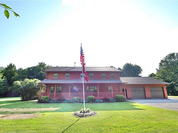 This perfect spacious, serene log home is ready to be moved into today! Solid 8" Canadian white cedar logs set out this one of a kind secluded getaway from any other home in the area.Huge fishing pond, hundreds of hand planted trees including apple,plum,lilacs,50 blueberry bushes.Private shared drive (one other).Great attention to detail on the exterior as well as interior.1st floor bedroom, 4 full baths, 5 total bedrooms, full front porch, private back deck, attached spacious garage, full basement (1500 sq ft) with 3 finished rooms and full bath .Plenty of cabinets and closets (26 total!) All mechanicals are in pristine working condition- Combo natural gas/wood forced air furnace w/ dual controls. Freshly painted interior and porch. Garage has 2 doors but is huge (1,024 sq ft). Minutes away from General Brown schools, airport, Watertown stores,Ft. Drum. This is the perfect home to get away from the hustle and bustle yet still be close to everything. Owners have taken every step to ensure privacy and serenity in this certified tree farm property. Large garden is tilled and ready to be filled. All utilities leading to house are buried. Includes Toro zero turn mower & generator.