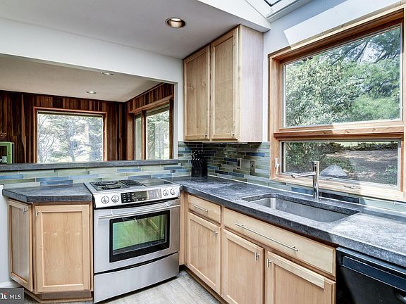LIKE AN OASIS OF CALM...Enjoy one story living in this remodeled ranch style home in a lush yet manicured park like setting! Every room overlooks a tranquil outdoor vista. This cheerful home is light and bright everywhere. Extensively remodeled throughout including the dramatic kitchen. You really need to look at this. Nothing compares to this 2605 finished sq foot beauty! Unique concrete counter tops with stainless steel appliances. Pella windows and doors throughout. Carefree cedar siding. Quality Ipe decks which overlook the beautiful landscaping. Master Suite with wall to wall windows. The Master Bedroom addition has a 7.5' x 15' designer closet, a loft, a wall of glass and private deck access. The recently remodeled finished lower level ( 937 sq feet) features a recreation room complete with a raised hearth wood burning fireplace in a corner location. The main level has an additional wood burning fireplace and a stand alone wood burning stove as well! This is a great value.
