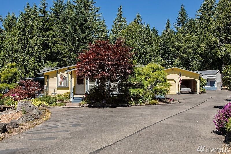 You'll exhale on your way up to this beautiful secluded property! Bright and cheerful, you'll never have the blues! Large 2 bedroom-1815sf country-style home on over an acre next to a greenbelt. Entertain inside or out-spacious deck partially covered. CAR ENTHUSIASTS take notice! An 1800SF+ workshop with office, with power, heat and a large storage loft. Super nice asphalt driveway and a 2-car garage. Plenty of parking and turnaround. Green house, dog pen, clothes line...Lots offered here!!