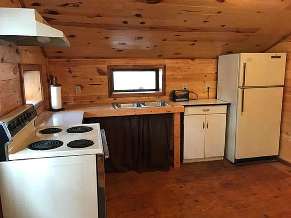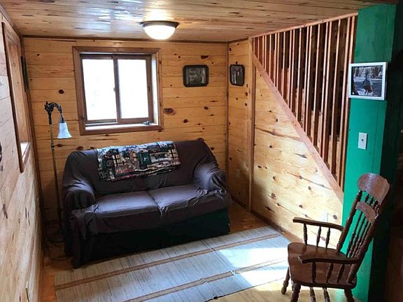 LH4563 So much potential for this Potato Lake property! Two bedroom cabin on Potato Lake has open floor plan with bedrooms on upper level. Electric has been updated, new well and septic. Two septic tanks to provide for the main cabin and full service rv spots providing electric, water and septic hook ups with the possibility for a 3rd. Electric in cabin, water and septic are ready to hook up to complete this beautiful property. There is a bath house with shower and sink. Dock is included.
