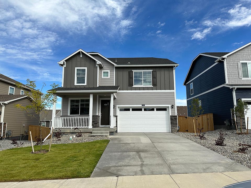 **Brand New **Walkout Basement This brand new home features an open concept floor-plan and it is a home welcomes you with a charming covered front porch, and a full unfinished walkout basement. Included upgrades and features such as a convenient main floor study/flex space. Modern white shaker style cabinets, sleek stainless steel appliances with a gas range, refrigerator, stunning quartz countertops with upgraded tile backsplash, and easy maintenance laminate flooring throughout most of the main floor. Upper level bathrooms include stylish quartz counter tops, and all bathrooms and laundry (Washer and Dryer provided) include tile flooring. Trails at Crowfoot community amenities include a community swimming pool, playground, 17-acre park, and recreation areas. Nearby is the Pace Center, Main Street Parker (shops/restaurants) Library, Parker Ice Trail at Discovery Park, and a dog park. Renter is responsible for gas, electric, water, and yard maintenance. No smoking allowed.