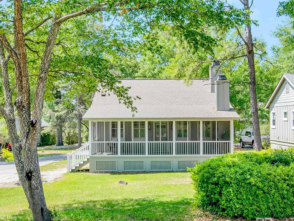 Back on the Market due to NO fault by the seller. Nestled within the picturesque golf course community of Steelwood, this charming one-bedroom, two-bathroom cabin offers the perfect retreat. Located on a corner lot, this fully furnished cabin, complete with plantation shutters, provides an open, vaulted ceiling great room with a kitchen (refrigerator included), dining space, and a living area with a stone wood-burning fireplace. The spacious primary en-suite bedroom includes extra closet space, a large vanity with built-in cabinets, a separate shower, and a garden tub for a relaxing soak. The second bathroom provides convenience for guests, and a separate utility room with a stacked washer/dryer includes extra shelving for storage; both have pocket doors to maximize space. Enjoy your mornings on the large screened front porch with a wood-burning fireplace, surrounded by lush greenery and overlooking the manicured driving range. Steelwood is a gated community that provides access to the Chapel Grove area with a pavilion, an outdoor pool with pop-up jets, basketball, pickleball, and a playground, all included in your POA dues. If you desire more, a separate Steelwood Country Club membership offers the Championship golf course, a 200+ acre stocked lake with a fishing dock, a Clubhouse with dining facilities, a fitness center, and a pool. Whether you're a golfer, a nature lover, or simply seeking a peaceful escape, this quaint cabin is the perfect place to call home. Buyer and Buyer's agent to verify all information. Buyer to verify all information during due diligence.