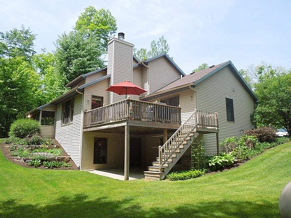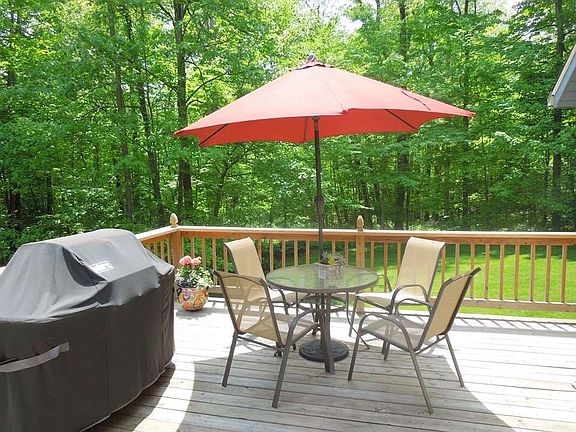Peaceful and tranquil - a 2.43 picturesque wooded landscape is the setting for this 1952 st ft 1.5 story with master on main floor. Manicured to perfection, enjoy the view of the shaded backyard from the sunroom/screened porch while listening to a variety of songbirds or grill from the elevated deck off the master and great room while entertaining friends and family. Kitchen was updated in 2011 with new comfort vinyl flooring, island with granite top, new stainless steel sink, faucet and garbage disposal. Refrigerator, dishwasher and range were all new in 2011 and are staying. New engineered hardwood flooring in entryway, new Anderson patio doors in screened porch and master bedroom, and new Anderson window in master bedroom. New Carrier furnace in 2013, new roof in 2016. Top/bottom cellular shades throughout first and second floor. Nice loft overlooking the great room with 2 bedrooms and a full bath up. A wonderful WALK-OUT BASEMENT includes office/den with French doors, family room with French doors, and a rec room area. Water softener, back-up sump pump, third car garage, wood-burning fireplace. Award winning Leo schools. great buy at $257,900
