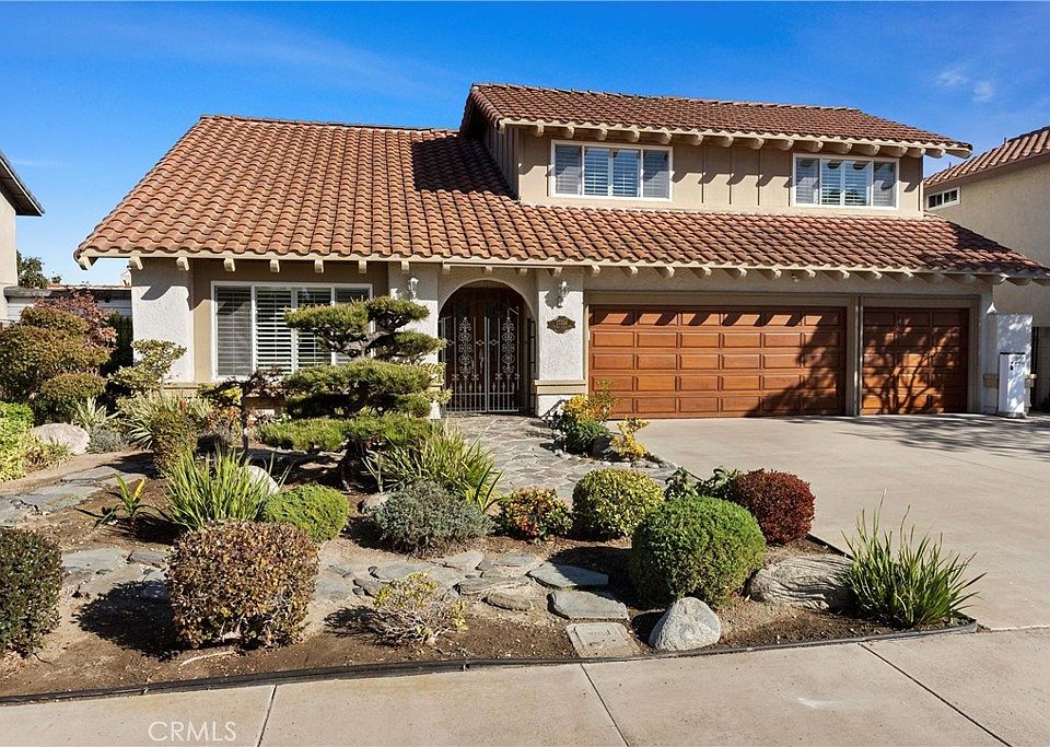 A soothing waterfall with a Japanese Zen Garden to call your own. Colorful Koi fish that greet you every morning under dappled sunlight. If this sounds like paradise, then you’ve found your dream home. 17324 Flame Tree is located on a quiet cul-de-sac in the heart of Fountain Valley with a thriving koi pond and waterfall in the backyard. Soaring vaulted ceilings highlight the spacious living room giving you time to breathe as you enter the home through the leaded glass oak door. Continue to the formal dining room where the whole family can enjoy a meal together. Attached is the gourmet kitchen with oak cabinets and granite counters waiting for the excitement and energy of cooking a special meal. Loads of cabinet space and a pantry make room for all your needs. A breakfast counter that seats four plus a dining nook means room for more than mealtime in the kitchen. A separate family room featuring a brick fireplace and a wet bar for entertaining, is at the back of the house, with windows that overlooks the serene backyard. Upstairs you will find a primary suite and 3 additional bedrooms. The primary suite is fit for a king and queen with vaulted ceilings and a cozy brick fireplace. The massive bathroom has two closets, one is a walk-in closet, double sink vanity, separate shower and a soaking tub to relax and unwind. Plantation shutters on the windows throughout the house add to the sophistication of the home. The inside laundry room is just off the coveted three-car garage. Located across from La Capilla Park and walking distance to Plavan Elementary, shopping and entertainment. This is truly a forever home.