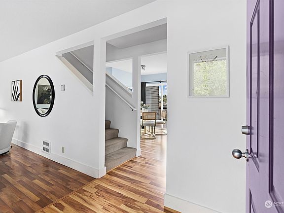 Perched on a tree-lined Mt. Baker street overlooking downtown, this 3-bedroom townhome offers comfortable living with sunset views. Two light-filled bedrooms, including the large primary bed with walk-in closet, and full bath upstairs. Third/Guest bedroom or home office equipped with fiber cable and additional bath on main floor. Even more...enjoy two west-facing decks, one just off the open kitchen/dining room and one off the primary bedroom upstairs. In addition, the large lot boasts spacious yard with potential. Situated near award-winning schools, trails and parks. A mere 5 blocks to the new light rail station (2025) and on bus lines and with easy access to I-90 and I-5 make this a commuter's dream. Room to grow and a location to match!