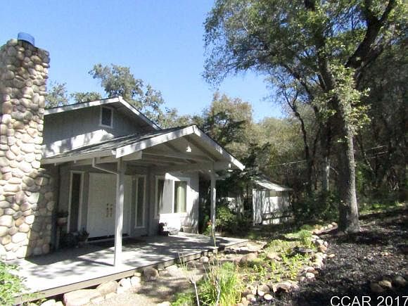 This property might best be described as a garden with a house after 20+ years of nurturing by a real Master Gardener. Gravel and rock paths invite you to meander among 100+ varieties of plants, over bridges, tucked away sitting areas, plus seasonal streams and more. On the 2.1 acres sits a 4 bed 3 bath home located just 2.5 miles from downtown Murphys Main Street. Enter via an electronic gate to the paved courtyard. On the right is the covered double-door entry; to the left is the 900+ sq ft workshop and 2 nearby sheds. Home features hardwood floors, remodeled kitchen, trex decking, + a newer roof. Recent upgrades include exterior paint, repaved driveway, and double pane vinyl windows throughout. There are 3 separate gated entrances!