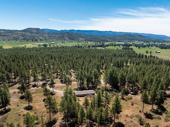 This absolutely beautiful, pine filled, 38.57-acre property is located off a dead-end road less traveled and offers privacy, tranquility, picturesque scenery, nature, and flexibility with no HOA restrictions. For fishing enthusiasts, the property comes with a deeded access to the Los Pinos River. Whether you are looking to enjoy the current home on the property or build your dream home, this property has options for everyone. The property location makes you feel worlds away from city life and yet you are only eight minutes away from the charming town of Bayfield, Colorado that offers all the conveniences and services for daily living or 25 minutes away from Durango, Colorado should you need the conveniences of a larger city. The current home offers an open floor plan accented with a cozy wood stove. The home has been recently updated with new exterior paint, new carpet, new window coverings, new appliances, new hot water tank, new front porch deck, and new driveway improvements. The home is in move-in condition. The well and septic were installed after 2021 and are in excellent condition. The property features a 350-amp electrical service from the meter and includes a junction box that splits electrical service to the current home, a connection to an RV station, and options to run service to both an additional service building and a new home. The property also has a 16 x 8 storage shed in good condition with a 16 x 10 lean-to attached to store your firewood or equipment. Two additional outbuildings can be used as a sanctuary to get away from it all! There is a garden area with planter boxes for the green thumb enthusiasts. Legal work to purge the title to the home has been completed and approved. The home will be merged into one real estate parcel by the La Plata County Assessor on January 1, 2025. Financing options are available. Agent owned property. Schedule a showing now and imagine the possibilities this beautiful property has to offer.