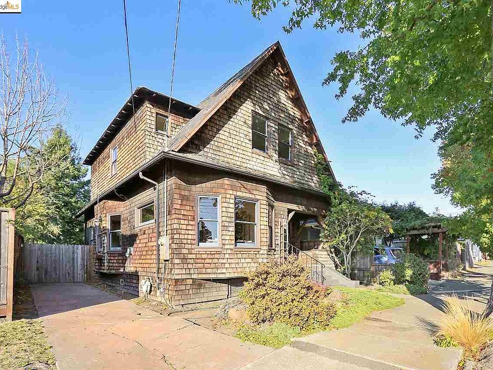 A classic Berkeley Brown Shingle home w/ a vast park-like backyard setting, complete w/ sunny patio, lawn & beautiful coniferous trees. Enjoy over 1,700 sq ft of living space over two levels, including a light filled living room adjacent to a formal dining room w/ period trim & oak floors. The early 20th century two section eat-in kitchen in the rear of the home opens to the back yard through a convenient mud room. A 1/2 bath & laundry hookups complete the first level. Up the grand fir stairwell & upper landing you'll find 3 bedrooms, a full bath w/ shower over tub & pull down stairs to a spacious storage attic. When you're not soaking up the sun in the wonderful yard, you'll find yourself just minutes to everything fun and convenient including BART, shopping, schools, downtown, the university, parks, commercial dining & entertainment districts. This architectural gem is ready for you to compliment it's original features and upgrade to your own modern style and taste.