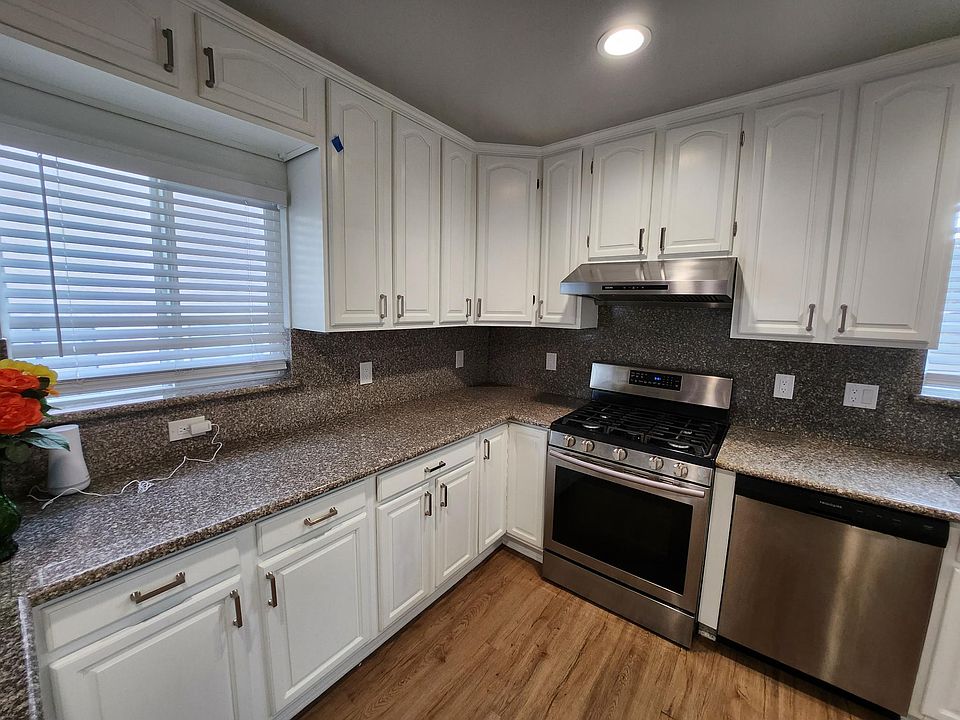 Enjoy this charming single-family home with an open floor plan. The property features a dining area and a spacious, updated kitchen with granite countertops and a newer stove. The bathroom is updated with an over-the-tub shower. A large backyard with a storage shed is perfect for outdoor activities. A stackable washer and dryer are included. The home is conveniently located near shops and offers easy freeway access. Please note that the garage is not included with the home, but the shed in the backyard is available for use. Pets are welcome, and garbage and gardening services are included in the rent. Smoking is not permitted inside the home. Washer and Dryer As-Is A credit score of 680 or higher is required. Garbage and gardener included