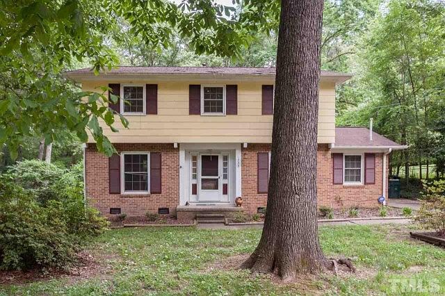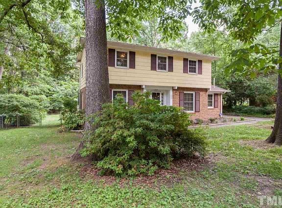 This home is located in the Parkwood subdivision in Durham near Hwy 54 and Hwy 55, RTP, Southpoint Mall and I-40. Quiet neighborhood with mature trees and several small fishing lakes within walking distance. New roof 2019, encapsulated crawlspace, remodeled guest bathroom. Downstairs features all hardwood floors, beautiful updated kitchen with custom tile backsplash and lots of cabinet and counter space. Formal dining room features chair rail and updated light fixtures. Living room is large and features built-in bookshelves and extra space for small home office. Large mudroom plus separate laundry room with included washer and dryer is a big bonus. Fantastic sun room with ceiling fan complete the lower level of this unique home. Upstairs features all hardwoods in 3 bedrooms and hallway. Master has 2 closets plus available large wardrobe closets for even more storage. Bedroom 2 is huge and has a small sitting area. Bedroom 3 is decent size and would make a great office. Backyard is fully fenced and backs to woods for maximum privacy. Almost 1/3 acre lot with separate patio area is great for BBQ or entertaining. Large storage shed included. 2-3 min to I-405-10 min to RTP8-10 min to the Streets at Southpoint Mall15 min to UNC.