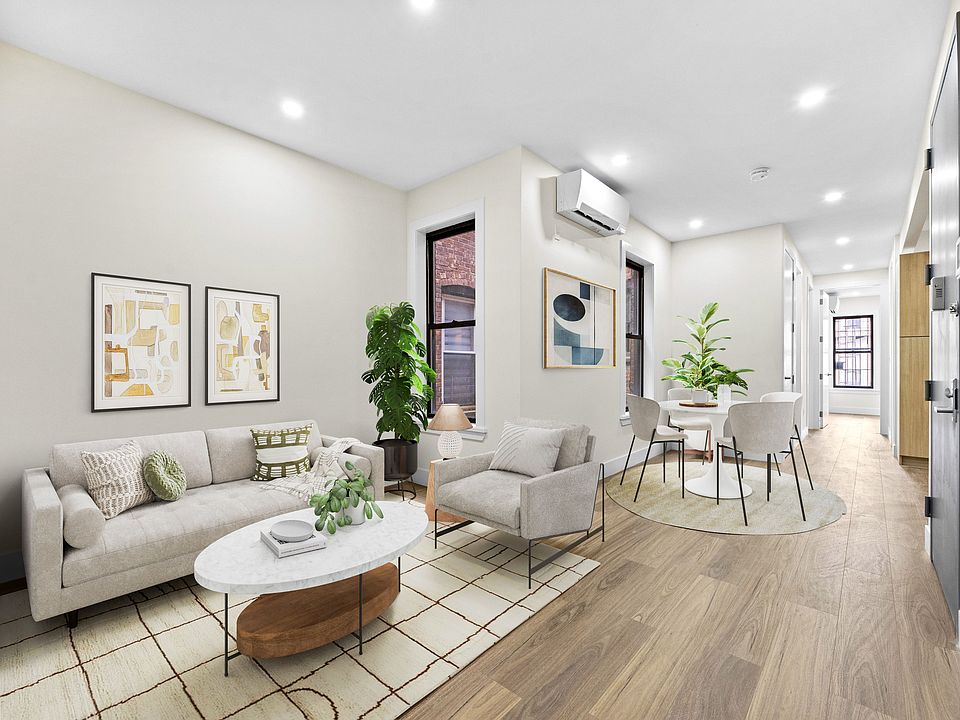 Stunning HUGE Full-Floor 3BR + Office in Prime Ridgewood | No Fee Be the first to live in this newly renovated, full-floor apartment in prime Ridgewood! This huge unit boasts 3 large bedrooms, a home office/entertainment room, and modern upgrades throughout. Unit Features: Spacious Layout: A massive full-floor residence with high ceilings, an open living/dining space, and abundant natural light. Bedrooms & Office: Three generously sized bedrooms, each with a closet, plus a separate office or entertainment room. Designer Kitchen: Beautifully appointed with stone countertops and a dishwasher VENTED hood Luxurious Bathrooms: Two fully tiled, modern bathrooms. In-Unit Laundry: Full-size washer and dryer. Climate Control: Reliable Mitsubishi Hyper Heat mini-split system for year-round heating and AC. Modern Security: Video intercom system. Charming Detail: Features exposed brick wall classic retro wood staircase in the hallway. The Building: Gorgeous, newly renovated propertyPre-War Charm meets Modern Luxury Unbeatable access to the L and M trains, surrounded famous restaurants, cafe, bar , supermarket and many more! 5-minute walk to the M train (Seneca Ave) 10-minute walk to the L/M train (Myrtle Ave) NO FEE! *first photo are virtually staged *