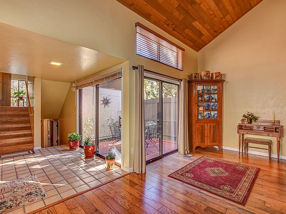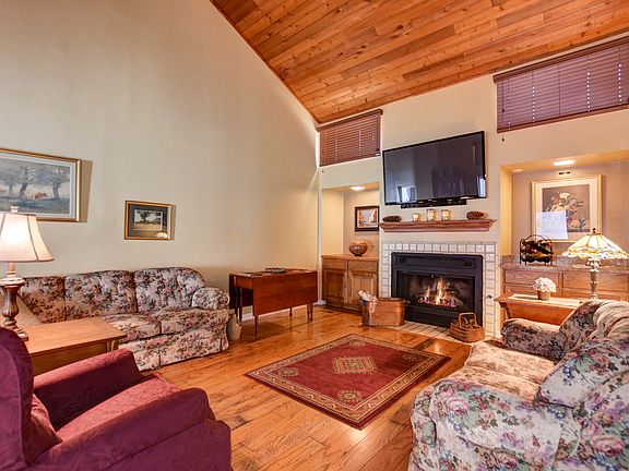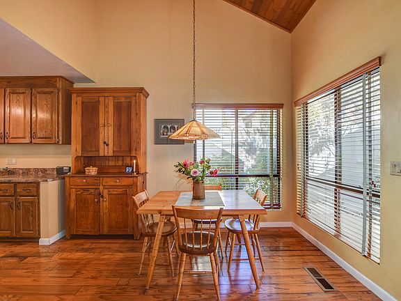 Immaculate 1615 sf former model home bordering Banning Creek in coveted Hidden Valley Ranch. Light, elegant and upgraded single family home features engineered wood flooring, stainless appliances, and a full master/master bath remodel w/granite, raised sinks, tile, and heated floors! Features bright entry accented by an atrium/patio, raised ceilings with tongue-in-groove, gas FP, bar, and 1/2 bath on main level. Split plan w/master upstairs and two bedrooms, full bath, and laundry down. Master has two balconies, upgraded bath, walk-in closet. Lower bedroom 3 has sliding doors to back patio, which is completely pavered, private and serene. Instant hot water/RO system. ubdivision borders Nat'l Forest, has pool, tennis, RV lot. Owner REQUIRES leaseback up to 6 mos. HOA maintains exterior.