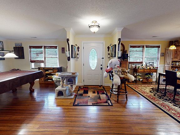 Beautifully Upgraded Zebulon home on 2.87 Acres. Features Open Layout with Formal Dining and Living Rooms, Wood floors throughout Main Living Area, Family Room featuring Wood Burning Fireplace with Floor to Ceiling Brick Surround, and Ceiling Fan. Upgraded Kitchen featuring Tile Floors, Granite Counters, Island with elevated Breakfast Bar, Storage, and Electrical, Upgraded Wood Cabinets with Rope Inset and Glaze, Hammered Copper Dual Farm Sink, Stainless Appliances, Smooth top Built-in Cooktop, Double Wall Ovens, Microwave, Pantry, Tile Backsplash, and Prep Sink. First Floor Primary Suite is spacious with en suite bath featuring tile floors and walls, dual furniture style vanity, Walk-in Shower featuring built-in bench, rain shower head, and Walk-in closet. Large secondary bedrooms featuring walk-in closets. Full Bathroom features upgraded cabinet storage, Granite topped Vanity, tile floors and walls. Laundry Room featuring exterior entrance. Exterior features large Sunroom, All Brick Exterior, Fenced Backyard, Wrap Around Deck, Storage Building, and Whole House Propane Generator. Expansive Front Yard and mostly cleared with wooded border. Located just 5 miles outside downtown Zebulon.