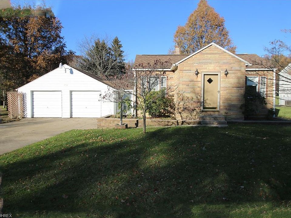 Looking for a generous size lot in Stow? This nicely updated ranch is on a .94 acre treed lot. Close to many city conveniences. Entering the front door you will see the foyer with 2 closets. Next is the living room with beautiful hardwood flooring and wood encased windows. The kitchen has been remodeled with maple cabinetry, tile backsplash, composite sink, formica countertops, ceramic flooring, range/oven and refrigerator. The master bedroom has cherry hardwood flooring and access to both the hallway and the kitchen. The second bedroom has hardwood flooring and lots of windows. The third bedroom has carpet. The bathroom has been remodeled and has built-in cabinets. The basement has a rec room, half bath and laundry area that includes the washer and dryer. The 2 car garage is attached by a breezeway and has an enclosed porch off the back. The backyard is incredible and has a shed. A home warranty is being offered.
