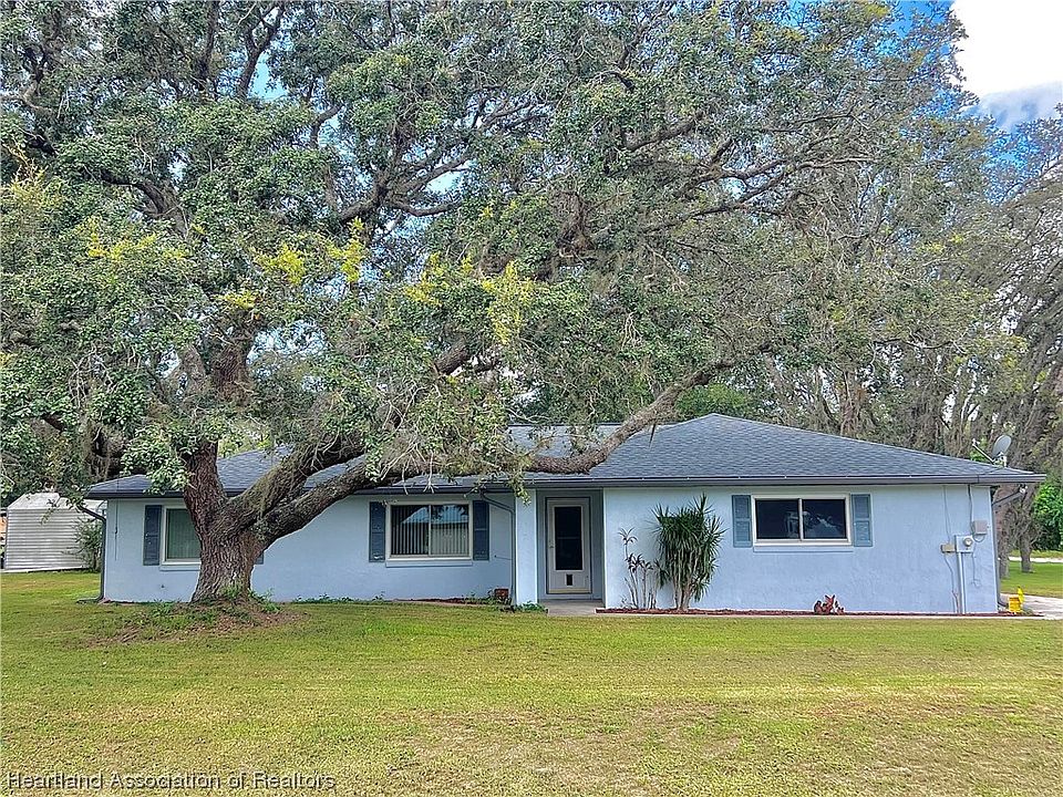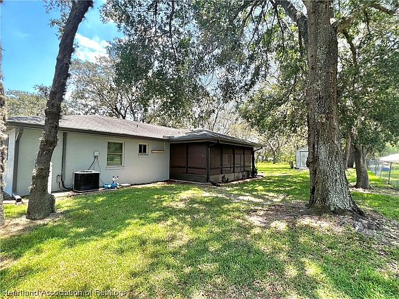 Situated under a grand oak tree on nearly a half-acre lot in Avon Park Lakes, this house is ready for new owners. Charming curb appeal with a side entry garage complete with a keyless entry pad for your convenience. This home has a NEW ROOF and NEW WATER HEATER, new windows installed in 2020, and most rooms throughout have been freshly painted in a neutral color. The kitchen has matching stainless steel appliances, pantry, and a nice amount of counter-top space. This home has a desirable split floor plan, and each bedroom has double closets for ample storage space. Be sure to notice the attractive wooden beam mounted on the ceiling that separates the eat in dining area from the living room. Sliding glass doors lead to the generously sized screened in porch. This oversized parcel also has a shed for additional storage space. Check out a 360-degree tour of the property here: https://mls.ricoh360.com/f336c22a-5866-4c5b-800f-29018085c712