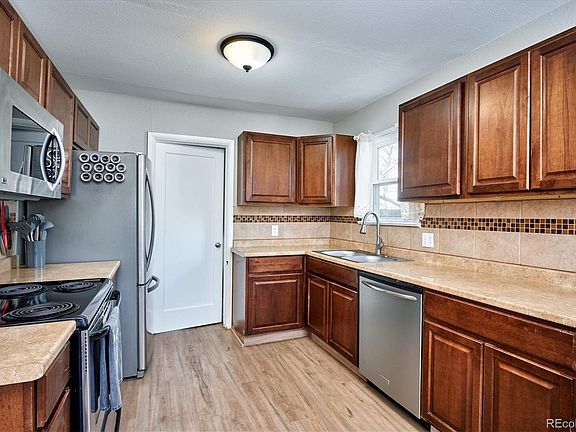 This property has so many upgrades and a 720 SQFT detached 3 Car Garage. Enjoy the peace of mind that comes with a lifetime warranty on the new windows and siding. A new furnace and garage door were installed in 2021, along with the updated kitchen floor and new gutters, provide added functionality and style. The private back yard is fenced and the spacious 3-car garage offers ample storage space for all of your vehicles and belongings. Don't miss out on the opportunity to make this property yours!" Close to Stanley Marketplace for shopping and dining experiences. within walking distance to UCHealth University of Colorado, Children's Hospital and VA Medical Center.
