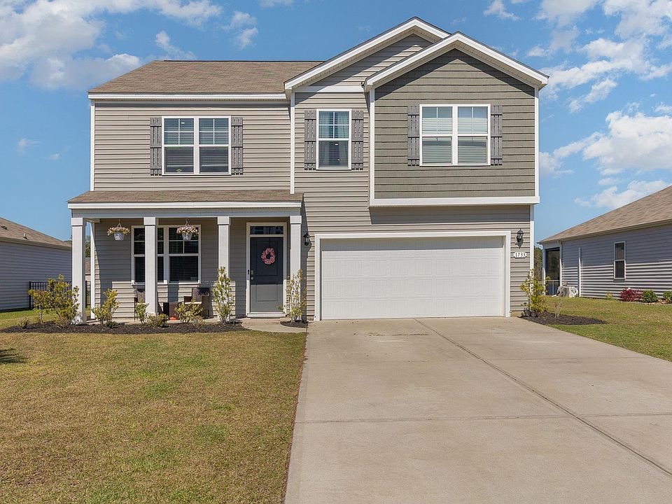 Welcome to your dream home nestled in the charming community of Harmony at St James! This stunning residence boasts 5 bedrooms, with the convenience of one located on the first floor, along with an expansive upstairs living area. Step inside and be greeted by the inviting open floor plan adorned with luxurious LVP flooring throughout, setting the stage for comfortable living and stylish entertaining. Prepare gourmet meals with ease in the well-appointed kitchen featuring sleek stainless-steel appliances, elegant granite countertops, a convenient work island with a breakfast bar, and a spacious pantry for all your storage needs. Each bedroom offers ample closet space and easy access to a bathroom, while the palatial master suite exudes tranquility with its generously sized walk-in closet, and indulgent private bath boasting double sink vanities. Outside, unwind on your covered back patio, perfect for enjoying leisurely afternoons or mingling with neighbors in this friendly community atmosphere. Harmony offers the ideal location, with proximity to schools, grocery stores, and the Grand Strand's premier dining, shopping, golf courses, and entertainment destinations. Don't let this opportunity slip away! Experience the epitome of low maintenance living with affordable HOA fees, while relishing the community's amenities such as the open-air pavilion and cozy fire pit, ideal for family gatherings and creating lasting memories. Embrace the lifestyle you deserve – make Harmony at St James your new home today!
