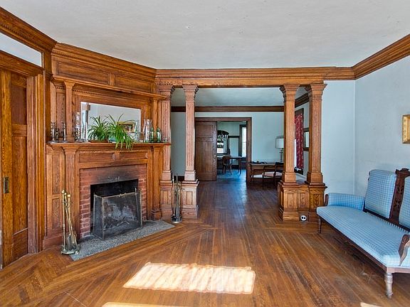 Incredible opportunity to own and restore an impressive 1906 Arts & Crafts home located on 5 acres in the beautiful hills of Conway. This grand “castle” like structure was designed and constructed by D.F. Allis who patented the cement bricks used to build the luxurious Weldon Hotel in Greenfield. The interior craftsmanship alone would cost a fortune to duplicate and must be seen to truly appreciate the value. This worthy project has mission style custom oak details displayed throughout including raised paneling, ornate dental & crown moldings, oak columns, pocket doors, ornate, gorgeous staircase and hardwood floors. It is the perfect home for entertaining with two large formal dining & living areas each with a fireplace and built-ins. There are 4 bedrooms, 4 additional rooms, full basement, & a walk up attic that could easily be finished. Also included, oversized 2 car garage with second floor and the property overlooks conservation land. Only 15 min. to I-91 & 20 min. Northampton.