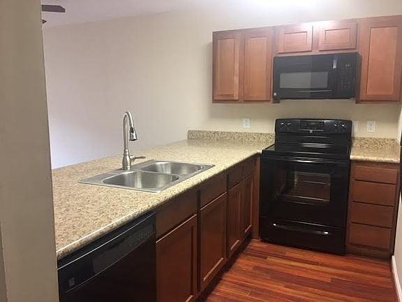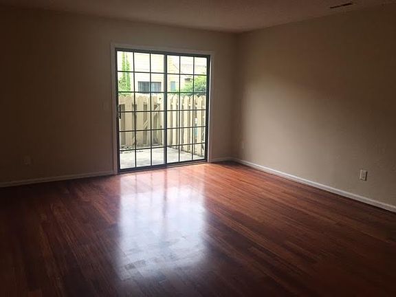This townhome boasts some beautiful upgrades. Has laminate hardwood floors throughout living area, uprgraded and modern light fixtures throughout, fabulous upgraded vanity in downstairs bathroom. Beautiful upgraded kitchen with new appliances and cabinets. Each room has its own bathroom. Great for a roommate situation. Fenced in back patio with sliding glass doors leading into living area. Built in bookcase in living room. Great walk in closet in bedroom. One year