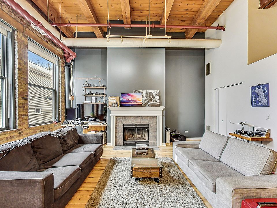 Welcome to your new home in the heart of West Lakeview! This gorgeous 2 bed, 1 bath timber loft in the iconic Postcard Factory Lofts with 14-foot ceilings is a unique space brimming with character. Step into an inviting and spacious living room adorned with vaulted ceilings, creating an atmosphere of grandeur and openness. The centerpiece of this welcoming space is a charming wood-burning fireplace, adding warmth and ambiance to your evenings. Perfect for cozy gatherings with loved ones or simply unwinding after a long day. Continue your journey through this home to a tastefully renovated kitchen featuring stainless steel appliances. Whether you're a culinary enthusiast or enjoy hosting friends and family, this kitchen is designed for both style and functionality. The loft's expansive layout with 14-foot ceilings creates an open and airy atmosphere, providing a canvas for your personal touch. Every corner exudes charm, making this home a truly unique find. Discover the elevated primary bedroom, adding to the home's character and offering an abundance of storage space directly beneath it. Practicality meets style in this thoughtfully designed space. Nestled in the West Lakeview area, you'll be surrounded by a vibrant neighborhood with trendy shops, dining options, and cultural attractions. You'll enjoy sunbathing or sipping a glass of wine in the summer time on building's brand new roof deck. This unit comes with the added convenience of a heated garage, ensuring your car is protected from the elements all year round. Additionally, enjoy the ease of being steps away from public transportation for seamless city connectivity. Explore the photo gallery to truly appreciate the beauty and potential of this loft. Schedule a showing today and make this captivating space your new home! Please allow 24 hours notice for showings. PS unit is not facing Irving Park Rd and is extremely quiet.