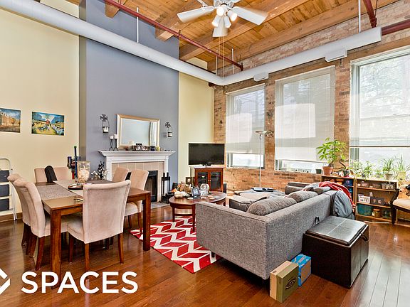2 Bedroom 1 Bathroom Lake View: Irving Park @ Hermitage Historic loft condo with a modern kitchen with both a dishwasher and microwave as well as hardwood floors throughout. It has central air-conditioning and heating as well as a washer and dryer available in the building. Has a functional fireplace and garage parking that is included in the rent. Has 14 foot high timber ceilings and pets are welcome. The building itself has bike storage, an elevator, roof deck, and secure entry thanks to an intercom.