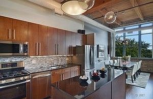 LakeView 2 Bd 2 Bath True Loft on quiet top flr at Post Card Place Lofts in prime SE corner, boasts panoramic views & light from oversized wndws, 15' timber ceilings, exposed ducts, brick & hdwd thru-out, newly renovated & open 42 " kitchen w/oversized island, updated & spa like baths all designer appointments, w/d in unit, almost 1800 sqft & both bedrooms enclosed. Roof top deck easily accessible. heated garage.