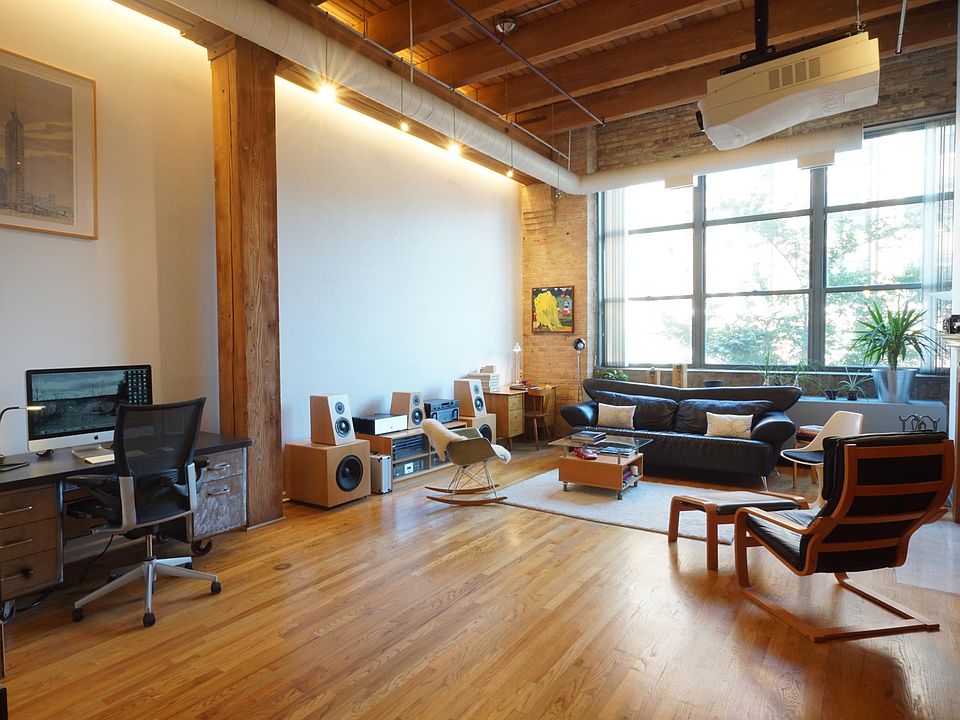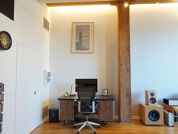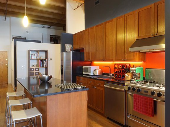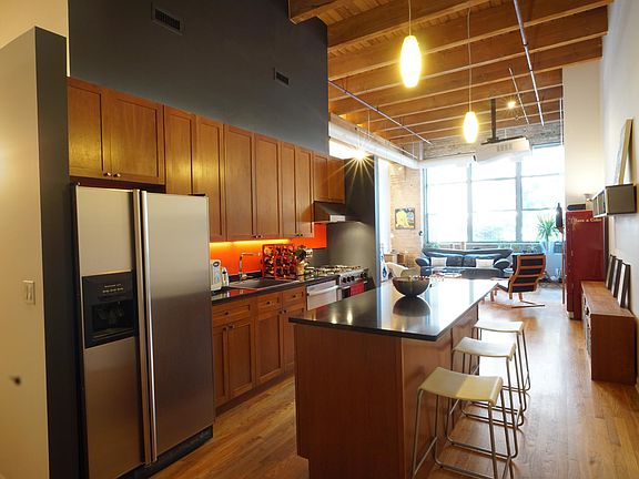 Designer Timber Loft - 1 Bedroom 14 FT ceilings, 1 block from Train Available Feb 1 with 13-month lease to March 1 with 12 month lease (longer terms available). No pets allowed. No smoking. Timber loft with exposed brick condominium with lofted one bedroom and one bathroom. Architect designed and owned with lots of unique touches not found in the typical apartment. Expansive 1000+ Sq Ft unit features soaring 14 Ft ceilings, a 10 Ft tall window, designer kitchen (with cherry cabinets, granite countertops, stainless steel appliances, dishwasher, 5-Star Range, filtered water), and huge storage room (not pictured) in unit. Hardwood floors, fireplace, high-end closets, flush solid wood doors, thoughtful lighting, quiet high-efficiency furnace with air purifier, and high-efficiency hot water heater. 50 mb/sec high-speed internet for $40. 1000 mb/sec available for additional $39 Mo. Low utility bills; about $80 Mo for Gas, $40 for Elec. Prewired for home theater. Built-in Computer Nook. Building offers elevator, video intercom, shared rooftop deck with amazing city view, and large in-building laundry room 50 feet from unit. The Brown Line is less than 1 block away. Metra stop available 1 block south of Lawrence Avenue (Easy to go to Ravina). Minutes from Trader Joe's, Southport, And North Center. Wrigley Field is within walking distance. Whole Foods, Mariano's, Jewel are also close by. Begyle and Dovetail microbrews about 1 block away. Divvy bike station and Getaround rental cars less than 1 block away. Easy street parking. Owner pays for trash and water Tenant Responsible for gas, electric, cable, and internet.