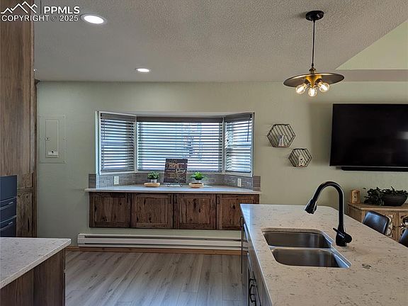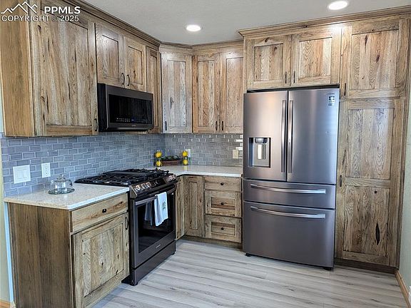Are you looking for a mountain home retreat? Located in the pines of Lake Woodmoor Townhomes, this fully furnished home is a free-standing one-level townhouse with a lake view and open space, surrounded by natural wildlife and scenery. This one bedroom, 1 1/2 bath, has been completely remodeled with custom hickory cabinets, all new Knotty Alder trim and doors, new windows, quartz counters, and stainless appliances. Custom tile work, luxury vinyl floors, and updated paint throughout the home inside and out. The upgraded rustic tiled gas fireplace with its unique mantel is perfect for those chilly nights. The recently redone concrete patio is surrounded by a contemporary black metal railing making it a great place to relax and enjoy nature. The oversized 2-car unattached garage has plenty of room for storage and can fit a bigger sized vehicle. It is fully furnished from floor to ceiling for your convenience. Close to schools, shopping, and downtown Monument.