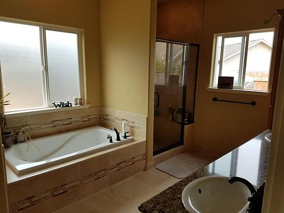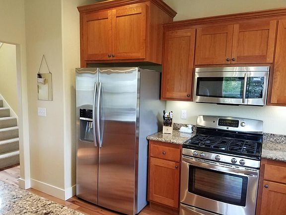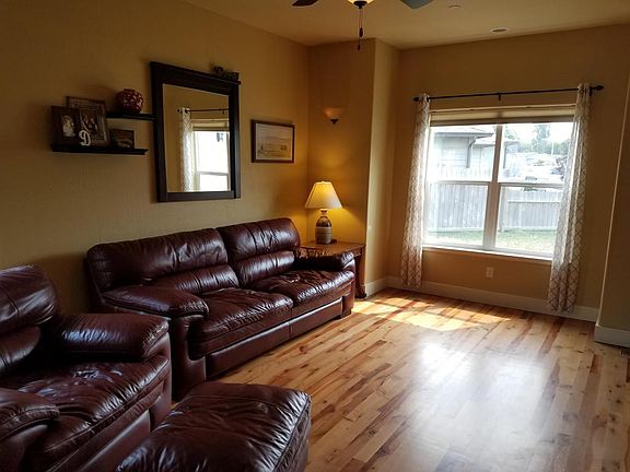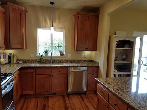 Out of the ordinary custom built beautiful home sits on .25 of an acre in newer subdivision (cul-de-sac) of Fortuna. Lovely 3 bed. 2.5 bath features Madrone hardwood flooring, top grade berber carpeting, slate/porcelain tile flooring in bathrooms. Master bath has soaker tub and travertine tiled walk-in shower. Kitchen and bathrooms boasts Canterbury quartz counter-tops, all cabinetry is natural cherry, appliances are stainless steel. Recessed lighting throughout with decorative sconces. Living rm has multiple cable wiring options for media center. Slider doors off dining room and MB leads to large deck. Back yard has fruit trees, raised garden beds, large dog kennel. Home is wired for alarm system. Home has 9' ceilings. Stamped concrete in driveway.Large double car garage