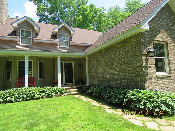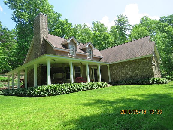 ALMOST 21 ACRES OF LAND, NATURE LOVERS PARADISE WHICH ADJOINS SEVERAL HUNDRED ACRES OF STATE OF OHIO LAND AND CRANES HOLLOW NATURE PRESERVE...Has its own waterfall, rock formations and gorge..A great opportunity to own this beautiful land and lovely custom home with two story great room with stone gas fireplace, windows everywhere to take in all of natures bounty, wood flooring, tile in kitchen and baths, granite counters, 3 full baths, 1st floor owners suite with lovely master bath with separate tub and shower, upper floor has two bedrooms with Jack and Jill bath, finished lower level with two rooms that could be more bedrooms, family room, lots of storage, even garage entry has tile, wonderful outdoor living area, covered shelter, lovely front, side porches. Wow! whole house generator!