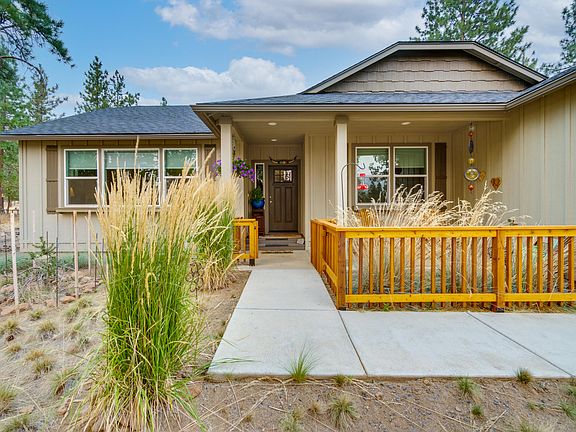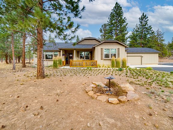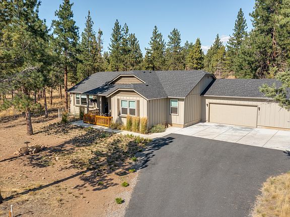 Beautiful single level home built in 2020 on just over 2 acres in the Squaw Creek Recreation Estates of Sisters, Oregon. This home has 3 bedrooms, 2 full bathrooms, with living room and bonus room. Open floor plan in the living room with a propane fireplace and the kitchen with the large island. A peak a boo view of North Sister Mountain is available from the from porch and naturally landscaped front yard. The rear of the property is fenced for pets with powder coated black chain link and cedar fencing. The lawn and treed landscaped rear of the property has a covered patio and power for a hot tub (current hot tub is negotiable). Parking for RV or boat. Minutes away from the quaint town of Sisters. Come live the dream!