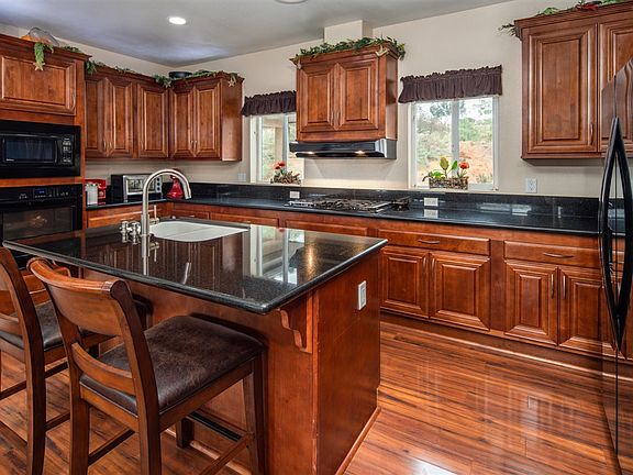 West End Ramona charmer built in 2014 with sunset views near the Mt. Woodson Golf Course, situated on 2.86 acres in an area or more expensive homes. Open single level floor plan -3 bedrooms plus an optional room, indoor laundry room and 2 car garage. Fantastic open kitchen designed to keep family and friends within view. Enjoy the storage in the abundance of cherry colored cabinets throughout the house. Solar Installed and owned. Low water use & low maintenance landscaping. Spend your spare time doing what you love instead of yard work. Enjoy nature from the comfort of home. Quick & easy access to hiking and entertainment, shopping,highways & schools. Priced to sell at $585,000.
