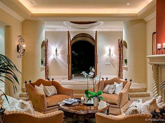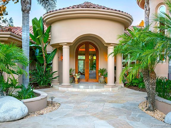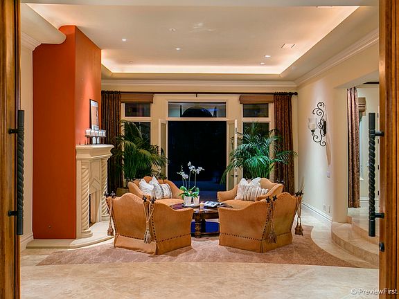Tastefully Fresh & Refined Resort-styled family estate. Romantic modern Master suite with adjacent office, & private guest area down, 3 Br/3 Ba plus bonus/game room, wet bar and children's homework area up. Walk-in wine cellar. Huge fully equipped chef's kitchen opens to the family room which flows out through retractable glass doors to the BBQ, outdoor fireplace, and fabulous entertainment area. Vanishing edge solar heated pool & spa with ultimate VIEWS, large flat grassy area, sport court, 4-car garage.