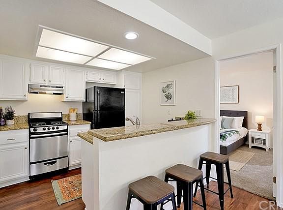 Looking for a picture-perfect condo not far from the beach? Ideally-located, this Fountain Valley home might be just the bright and comfortable abode youre looking for. Natural light flows in through multiple windows highlighting the hardwood-style floors and fresh paint in the open floorplan. Bright white cabinetry, granite countertops, and a breakfast bar feature in the kitchen while a sliding glass door opens out to the patio from the dining area. Youll delight in dual master bedrooms with new carpet and ensuites with one having a walk-in closet. Your private patio is ideal for relaxing with a morning coffee before heading to the community pool. Forget the hassle of street parking with your oversized two-car garage and appreciate the luxury of doing laundry in the comfort of your own home. With more privacy being set at the back of the complex away from Brookhurst St, easy access to the 405 freeway, and within an excellent school district, youll love calling this residence your very own. Come take advantage of this amazing investment with low HOA fees!