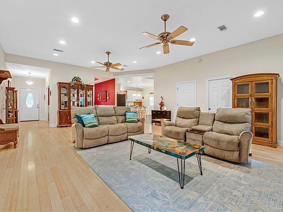 With just under 15 acres this home checks all the boxes. Ample closet space, +/- 955 sq foot walk-in attic, and a bonus room with a full bath measuring approx.. 379 sq. feet. Hidden room with a gun safe that stays with the home. Enjoy evenings fishing in the pond stocked with Bass and Brim. Watch the sunset from your very own courtyard surrounded by beautiful rose bushes. All of this is located in desirable flood zone X. See the full amenities list that this property has to offer.