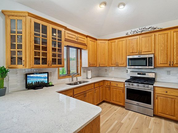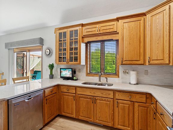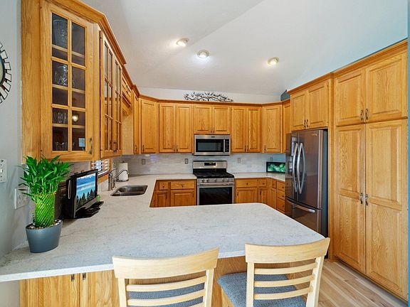 Beautiful rambler has been exceptionally cared for and is in model condition. Improvements since 2020 include new Pella windows, new floors, new front doors, appliances, granite counters, tile backsplash, fresh paint, gutters and LL bar. The roof and siding were done in 2006. The updated lower level features large amusement room with bar, 2 bedrooms,3rd bath, tons of storage. This home lives as beautifully outside as it does inside... 40x13 deck with matching patio with underdecking below. Amazing landscaping include gardening areas and play areas. Walking distance to restaurants, shops, grocery, trails and both Ponds and Ryan Park. 719 Schools!