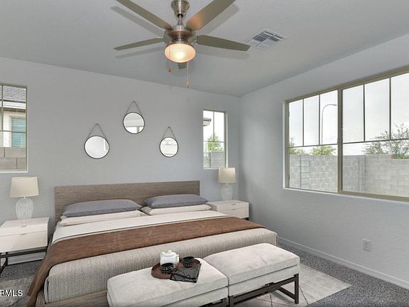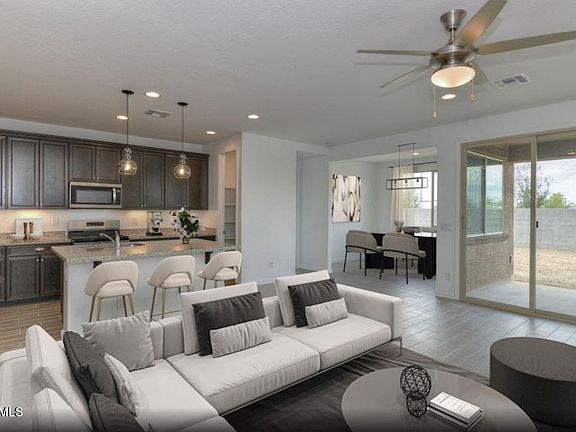 Located at the entrance of a tranquil cul-de-sac and surrounded by single-story homes for a little extra privacy. With a front porch perfect for early morning coffee while taking in the gorgeous Estrella Mountain views. The impressive entryway and hall lead to a bright kitchen with a center island and a spacious great room that opens to a covered patio, perfect for backyard barbecues. The split floor plan creates a private primary bedroom oasis.
