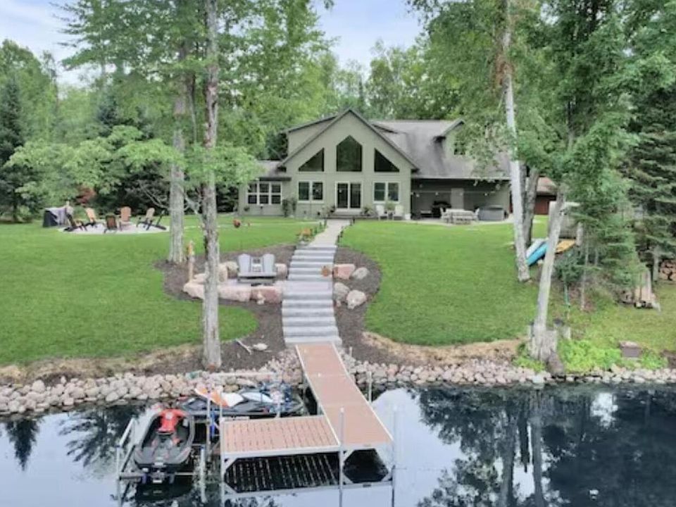 SPECTACULAR 2700+ sqft 4 bedroom 3.5 bath home WITH 110 FEET ON THE LOWER RESERVOIR POND FLOWAGE! Great recreation property located in the heart of the Nicolet National Forest area on the chain of lakes offering great fishing and boating. Near the snowmobile and ATV trail and lots of public land. Soaring cathedral ceiling. Awesome views out the custom windows.Finished lower level offers huge family room plus an additional bar/family room plumbed for a wet bar. Large Primary bedroom with private bath, 10X10 4 season room with electric heat. Fully furnished. Hot tub included. Enjoy life on the water! Showings begin 10/1/24.