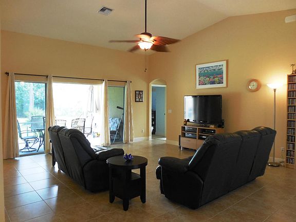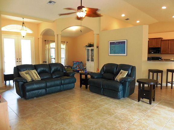 Lovely CBS 4 bedroom 2 bath home is on a paved road just a short walk from A+ rated elementary school. This home features a split bedroom plan with formal dining area as well as eat in kitchen. Master suite features walk in closets and tray ceiling. The master bath features dual sinks separate roman tub and separate shower. Kitchen features upgraded cabinets and breakfast bar. The large open living area has large sliders that lead out to covered screened in patio. Perfect for entertaining. Tile floors throughout living areas and carpet in bedrooms. The lot is approx. 1.25 acres with rear eastern exposure and room for a pool! The home has hurricane shutters. Property is fully fenced and equipped with sprinkler system. Easy access to I-95 and the turnpike. Not a short sale.