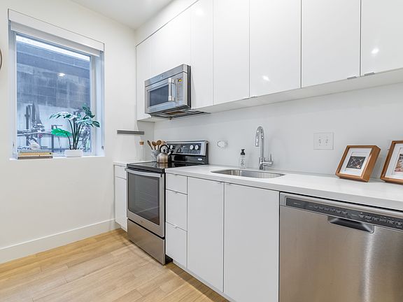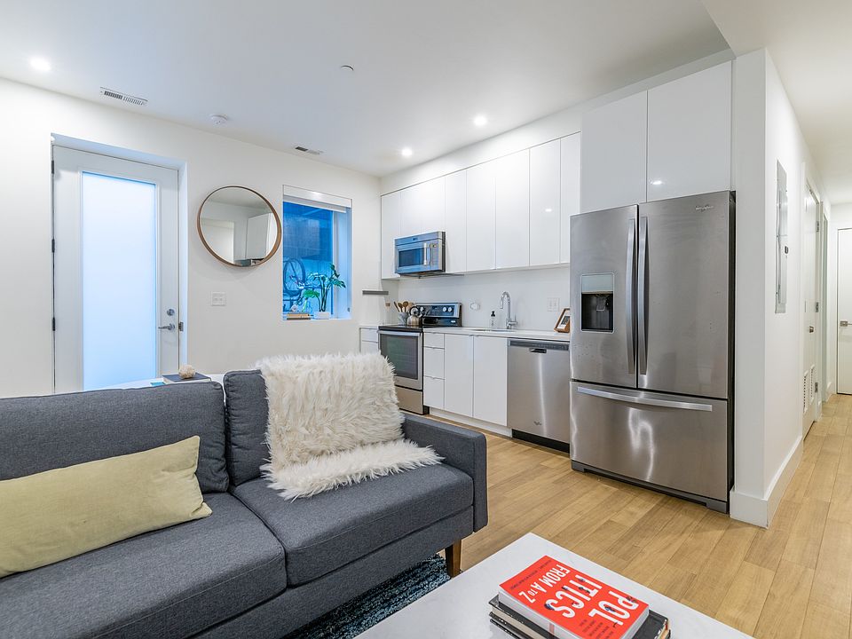 The apartment has in-unit laundry, full-size appliances, and a shared living space with a smart tv. Weekly cleaning of common areas is included. The apartments has a private outdoor patio and the building residents share a roof deck.