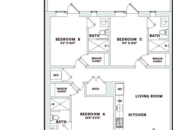 Unit 3 is a 3 bedroom, 3 bathroom apartment with a private outdoor space.