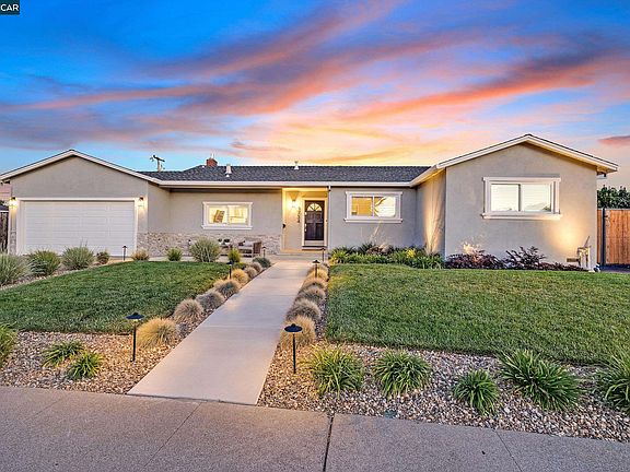 Welcome to this stunning single-story home located in one of the most desirable neighborhoods of Concord. This beautiful residence is on the market for the first time in 35 years and has been exquisitely upgraded and remodeled inside and out. Meticulously maintained with a deep pride of ownership you will love the gorgeous curb appeal and ambiance the moment you step inside. Featuring 4 bedrooms, 2 bathrooms, over 1,600 square feet of living space, on almost a quarter of an acre lot, this home has it all and is move-in ready. Formal living room provides a wonderful place to entertain while the family room consists of a cozy gas fireplace. Chef’s kitchen hosts a 4-burner gas stove, stainless steel appliances, deep sink, breakfast bar, soft closing drawers and an abundance of cabinet space. Primary bedroom features custom shaker style built-in wardrobe and a spa like ensuite. Other notable interior features include recessed lighting, 5 ½ inch baseboards, crown molding, hardwood floors, dual pane windows, plantation shutters, ceiling fans, and a finished garage with epoxy flooring. Backyard oasis is an entertainer’s dream - professionally landscaped with large stamped concrete patio and side yard, huge lush green grass area, pergola, horseshoe pit, and outdoor landscape lighting.